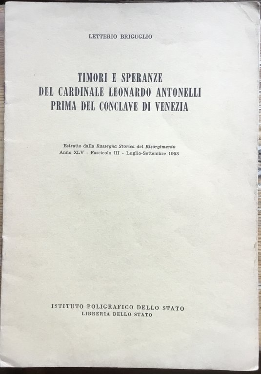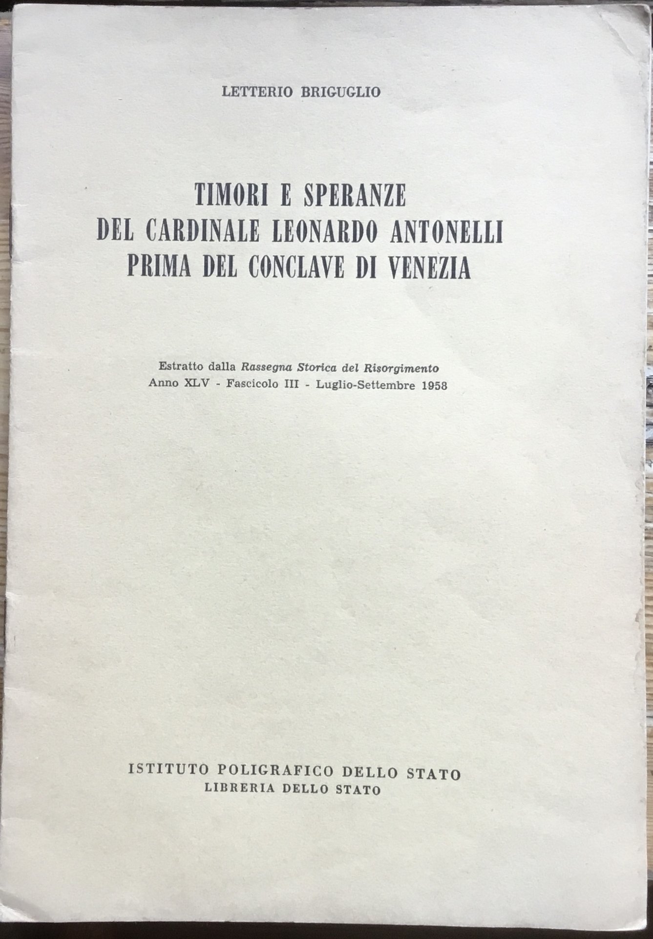 Timori e speranze del cardinale Leonardo Antonelli prima del conclave di Venezia