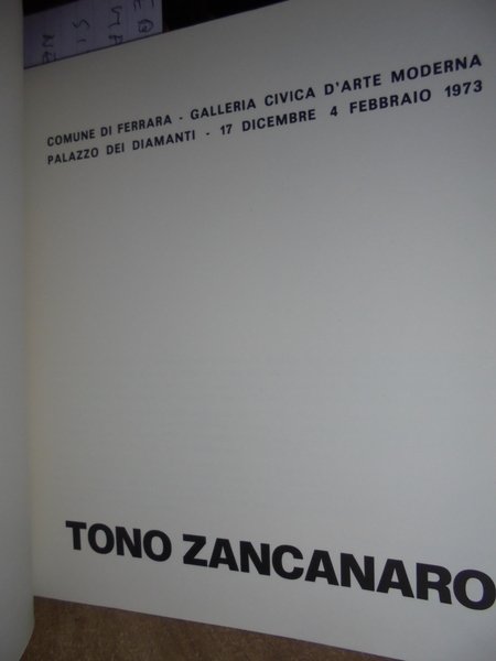 Comune di Ferrara - Galleria civica d' Arte Moderna, 1973. PALAZZO DEI DIAMANTI. TONO ZANCANARO. IN-8° QUADRATO, CARTONCINO EDIT. CON SOVRACOPERTINA ILLUSTRATA A COLORI. PP. 358 COMPLETAMENTE ILLUSTRATO. IN OTTIMO STATO DI CONSERVAZIONE. Neg. arte mob. 11