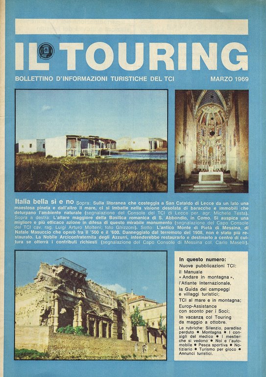 TOURING (IL). Bollettino d'informazioni turistiche del TCI. Marzo 1969.