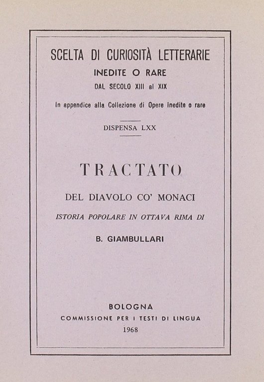 Sala Bolognese, 1969; br., pp. 40, cm 13x17,5. (Scelta di curiosità lett. dal sec. XIII).