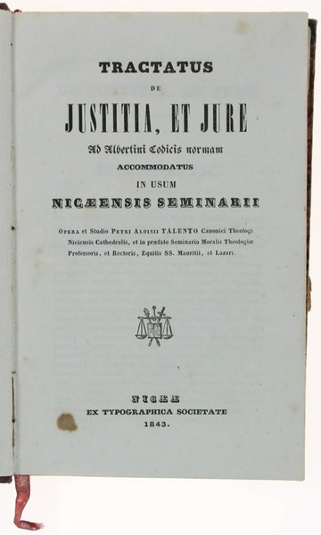 TRACTATUS DE JUSTITIA, ET JURE AD ALBERTINI CODICIS NORMAM ACCOMODATUS IN USUM NICAEENSIS SEMINARII. | Libri antichi e moderni | Talento Pietro Luigi