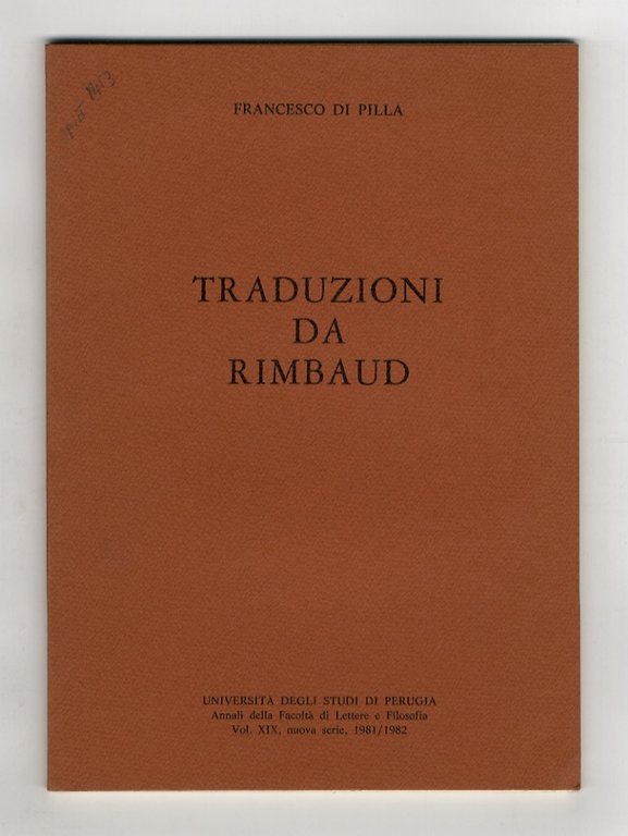 Perugia, Università degli Studi di Perugia, 1983, in-8, br. editoriale, pp. 37, [3]. I testi sono presenti in originale francese e traduzione italiana. Estratto, con invio autografo dell'autore "A Carlo Cordié, questi (se oso dire) tentativi; con devoto ricordo e vivi saluti [.]".