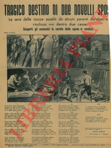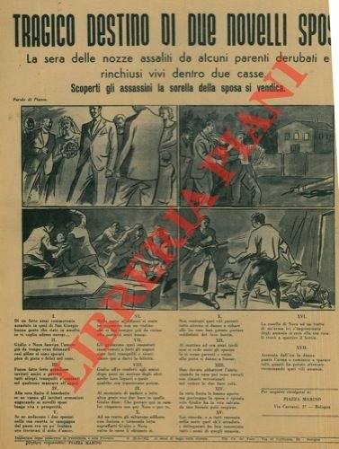 Bologna, Tip. Cà dè Fiori, 1952, foglio volante, stampato su un solo lato, su carta bianca, cm. 32 x 45, con illustrazioni.
