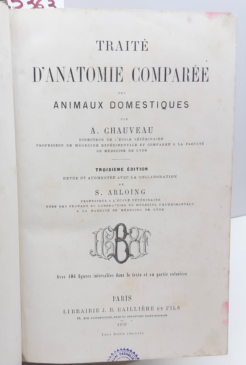 Traite d'anatomie comparÈe des animaux domestiques par a S. Arloing Bailliere 1879