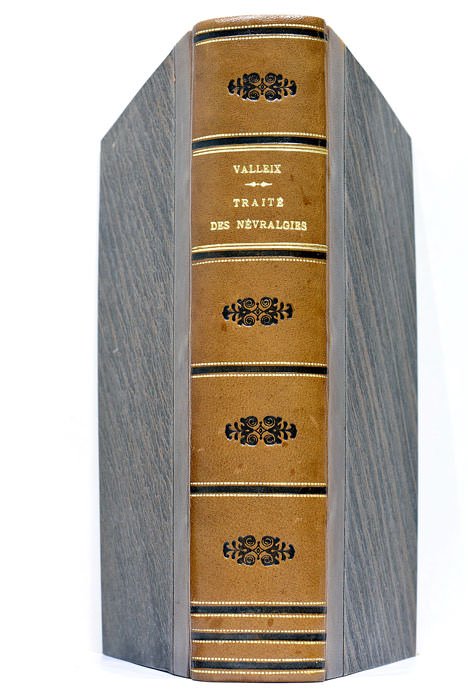 XIV. 717 pages. (22,5x14 Cm). Demi basane moderne dans le goût de l'époque. Dos lisse orné. Edition Originale du principal ouvrage de François Louis Isidore Valleix . L'ouvrage comprend une description des "points de Valleix" qui sont des points sensibles sur le parcours de certains nerfs dans les névralgies Quelques taches et rousseurs. Bon exemplaire.