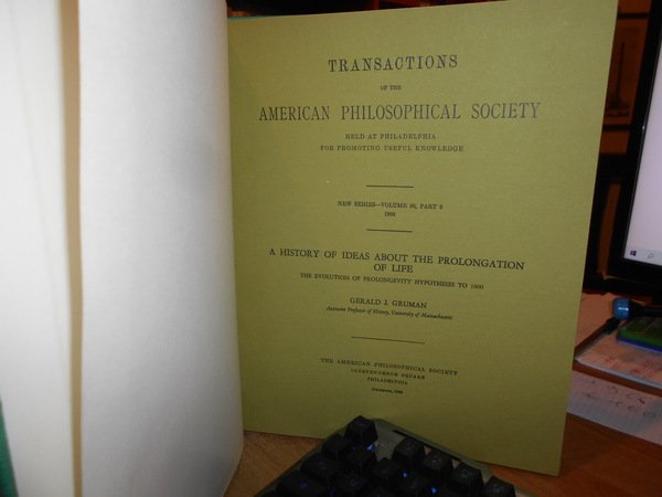 GERALD J. GRUMAN. Philadelphia, The American Philosophical Society, Independence Square, 1966. TRANSACTIONS of the American Philosophical Society held at Philadelphia for promoting useful knowledge. New series-Volume 56, part 9. In-4°, tela verde con titolo in oro entro tassello al dorso, brossure originali conservate. 102, (2) pp. Come nuovo. Uff. C - II - 5