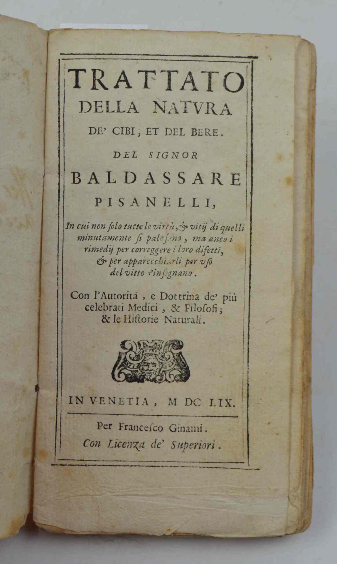 Tratatto della natura de' cibi, et del bere... in cui non solo tutte le virtù, & vitij di quelli minutamente si palesano, ma anco i rimedij per correggere i loro difetti, & per apparecchiarli per uso del vitto v'insegnano. Con l'Autorità, e Dottrina de' più celebrati Medici, & Filosofi; & le Historie Naturali.