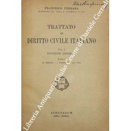 Trattato di diritto civile italiano. Vol. I (unico pubblicato) - Dottrine generali. Parte I - Il diritto. I soggetti. Le cose