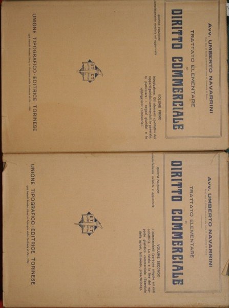 Quinta edizione completamente riveduta e aggiornata - in 8° - pp.VI + 526; 492 - Tela con sovracopertina - Due volumi - Lievi fioriture ai tagli, piccoli strappi senza mancanze alle sovracopertine - Vol. I: Introduzione. Gli elementi costitutivi dei rapporti giuridici commerciali, in generale. In particolare: I negozi giuridici e le obbligazioni commerciali; Vol. II: I commercianti (persone singole ed enti collettivi). La tutela e la fine del rapporto giuridico commerciale (esercizio delle azioni, fallimento, prescrizione)