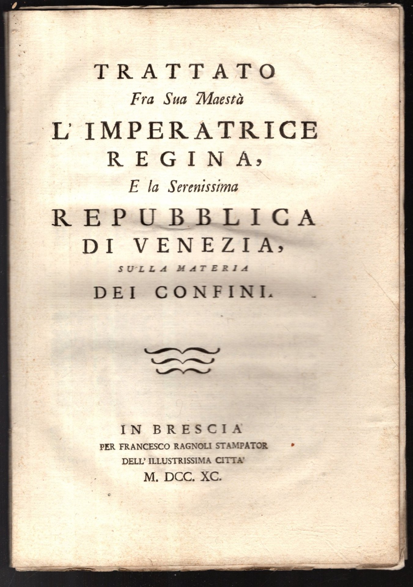 Trattato fra Sua Maestà l'imperatrice Regina e la Serenissima Repubblica di Venezia 1790 | Libri antichi e moderni | ,