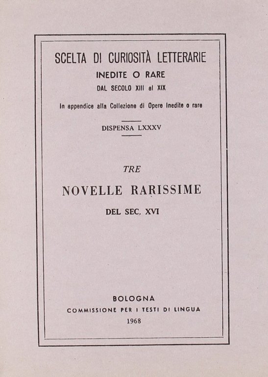 Sala Bolognese, 1969; br., pp. 132, cm 13x18. (Scelta di curiosità lett. dal sec. XIII).