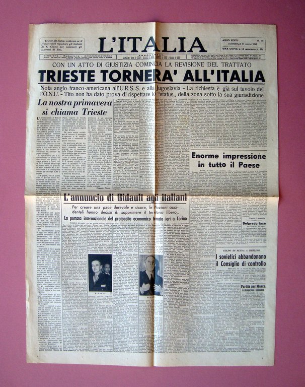 Trieste torner‡ all'Italia in prima L'Italia quotidiano 21 marzo 1946