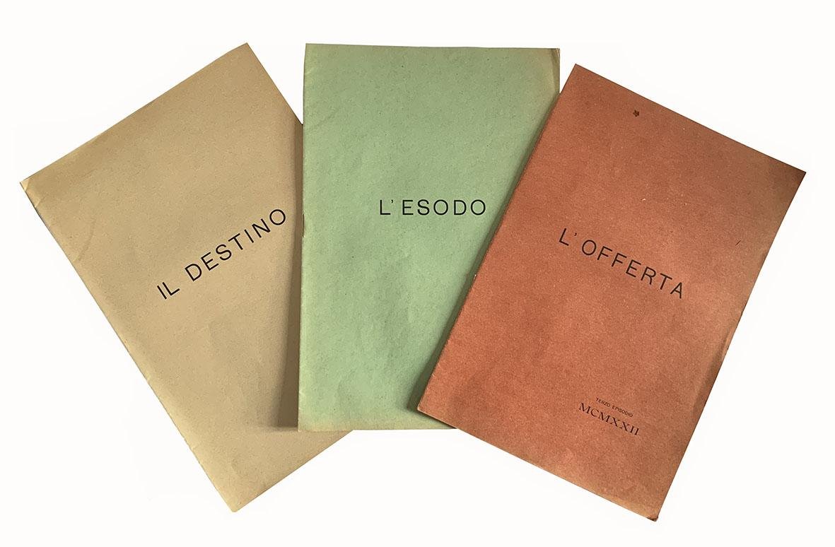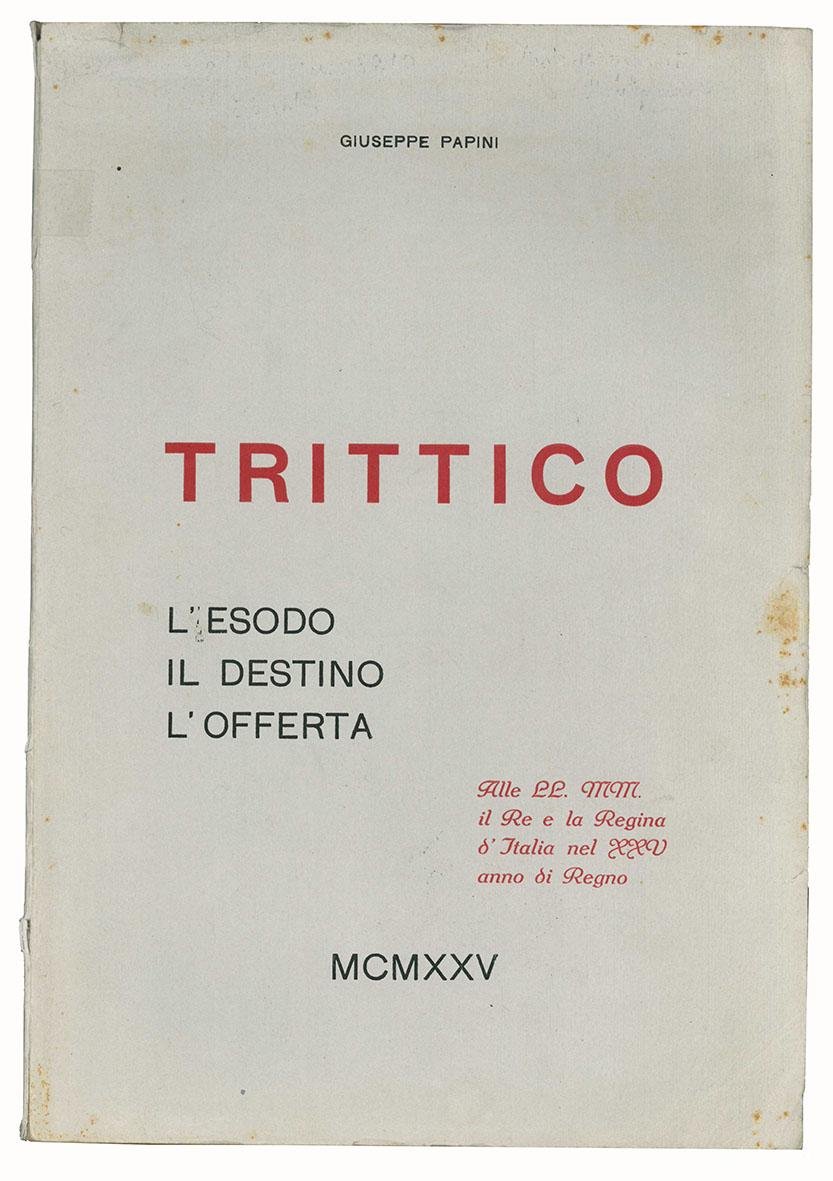 Trittico: L'esodo, Il destino, L'offerta. Alle LL.MM. il Re e la Regina d'Italia nel XXV anno di Regno. MCMXXV.