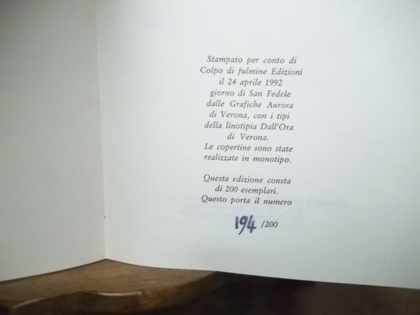 COLPO DI FULMINE EDIZIONI 1992 BROSSURA 16 X 12 TIRATURA DI 200 ESEMPLARI N. 194 OTTIME CONDIZIONI.