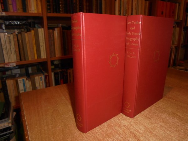 E.G.R. TAYLOR. New York, Octagon Books, 1968. TUDOR GEOGRAPHY 1485-1585 - 1485-1650. 2 volumi in-8°, tela rossa con titoli in oro ai dorsi. Vol. I. 1485-1583. ix, 290 pp. with sixteen plates.; Vol. II. 1583-1650 a sequel to Tudor Geography, 1485-1583. ix, 322 pp. with eight plates. Come nuovi. Uff. B - III - 7