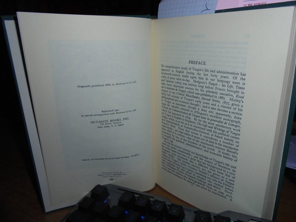 by DOUGLAS DAKIN. New York, Octagon Books, 1965. TURGOT and The Ancien Régime in France. In-8°, tela verde edit. con titolo in oro al dorso. xi, 361 pp. Come nuovo. Uff. B - III - 4 - 2