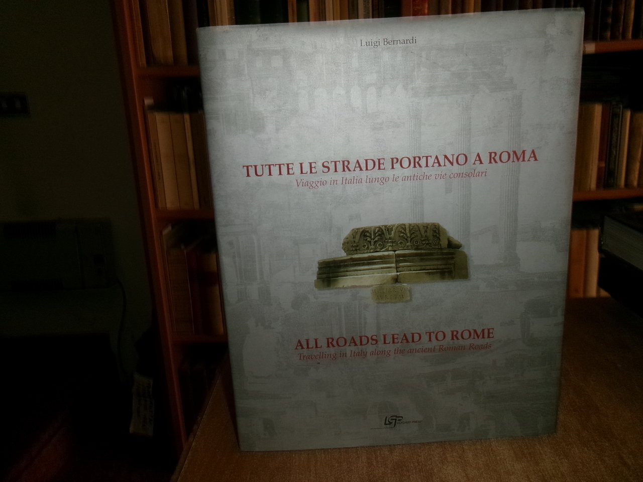 Tutte le strade portano a Roma. Viaggio in Italia lungo le antiche vie consolari. Ediz. italiana e inglese. In-4°, tela edit. con sovracopertina. 159 pp. con illustrazioni anche a colori n.t. Ottimo stato con testo Italiano/Inglese. Uff. C - IV - 2
