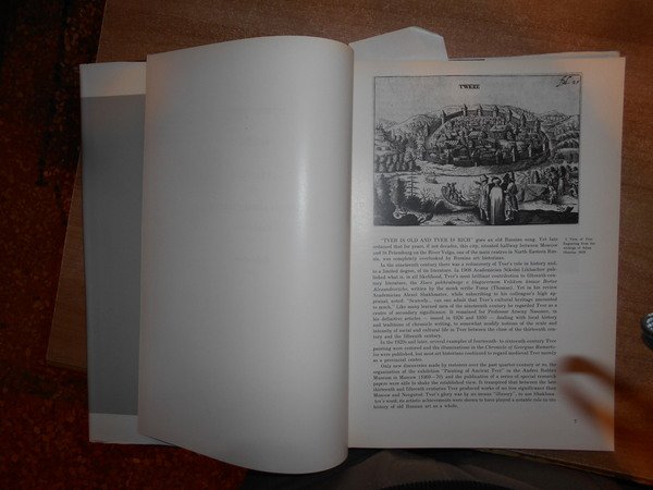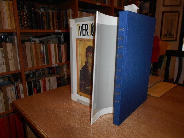 GENNADY POPOV. ST Petersburg, Aurora Art Publishers, 1993. TVER ICONS 13th - 17th centuries. In-4°, tela bleu edit. con titolo in oro al dorso, sovracopertina ill. a col. 283 pp. con numerose illustrazioni in bianco e nero e tavole a colori. Ottimo stato. Non è presente il primo foglio grigio muto. Sovracopertina con lievi segni d' uso. Uff. stanzetta a sinistra I - 2 - 2 carc.