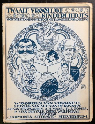 Twaalf vrolijke kinderliedjes voor tweestemmig kinderkoor met pianobegeleiding (ad lib.). Muziek van M.C. van de Rovaart, J.G. van Herwaarden, A.H. Maas, P.J. Oomes, P.J. van der Valk, Corns. Wulffraat