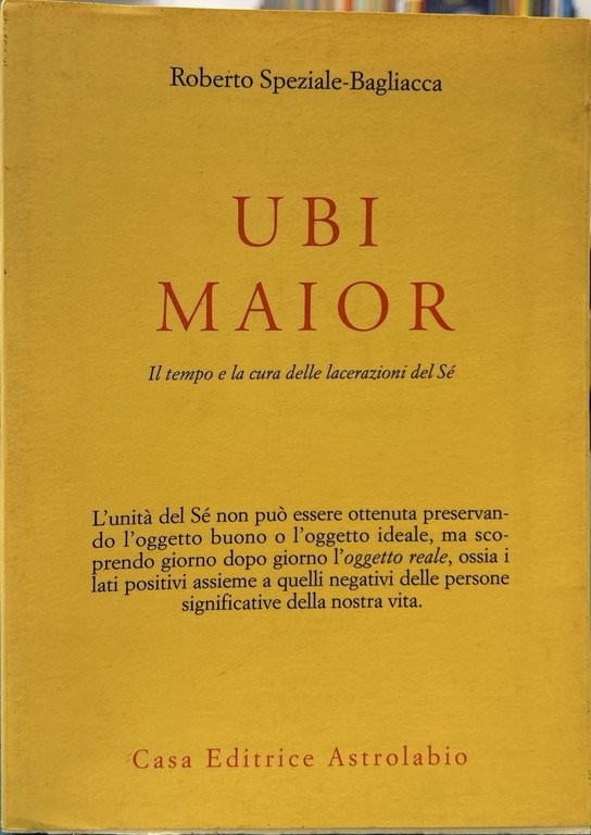 In questo libro l'Autore affronta un ostacolo di fondo, contenuto nell'antico proverbio Ubi maior minor cessat: di fronte a chi vale di più, sa di più, è più importante, chi sa di meno deve farsi da parte. L'autore ragiona sul delicato tema del ruolo dello psicoanalista come autorità funzionale: l'analista, inteso come maior, come figura genitoriale, ha il compito di usare il legame di dipendenza non per vincolare a sé ma per emancipare, prestando un'attenzione nuova ai reali bisogni del minor (paziente, figlio), un'attenzione che presuppone la comprensione di tutte le voci della sua vita psichica inconscia. Solo così è concepibile un'autentica psicoanalisi delle relazioni oggettuali. // Qualche macchia e fioritura alla sovraccoperta e ai tagli ma in generale in buone condizioni