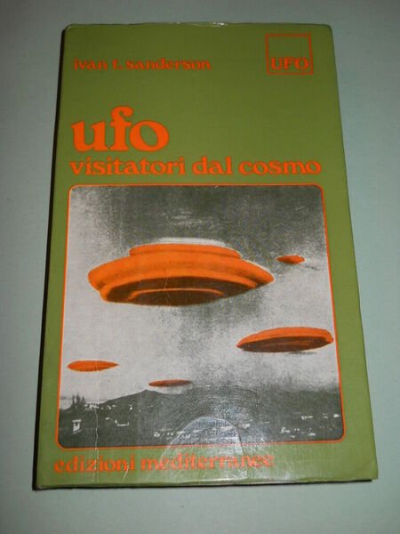 Sanderson, UFO visitatori del cosmo - edizioni mediterranee - copertina morbida con alette interne, formato cm 14 x 21, pag. 254, traduzione di Roberta Rambelli - buono stato, costa con varie righine lettura, leggera brunitura delle parti perimetrali interne ed esterne delle pagine