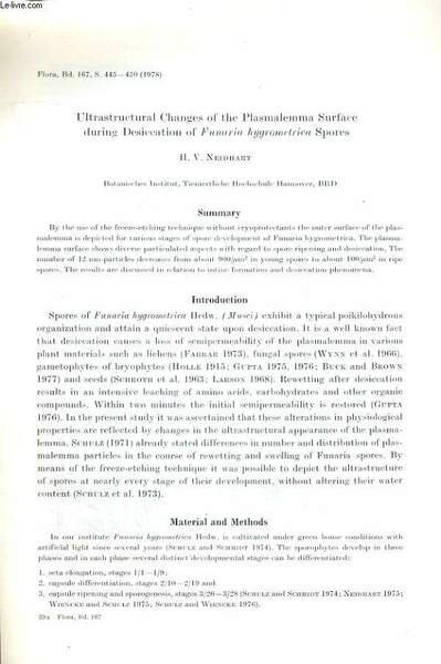 Ultrastructural changes of the Plasmalemma surface during desiccation of Funaria hygrometrica Spores, Flora Bd. 167, S. 445-450 | Libri antichi e moderni | H.V. Neidhart