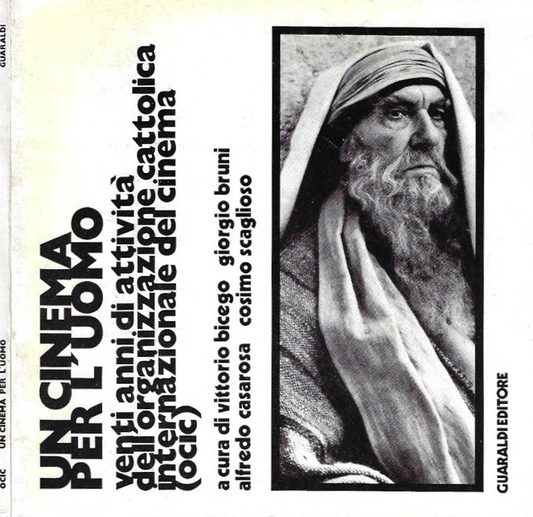 Rassegna storica dell'OCIC, testo affiancato da corposo percorso illustrato da schede filmografiche. Piccola brossura formato quadrato con aspetto vissuto, una seria abrasione verticale danneggia la quarta di copertina, segnata da altre tracce di attrito alle estremità, con pigmento sbiadito dalla luce maggiormente in cornice, patinato consunto, fogli avvolti da ossidazione bruna, intensa ai margini e condenso pulviscolo da umido ai tagli. N. pag. 50.