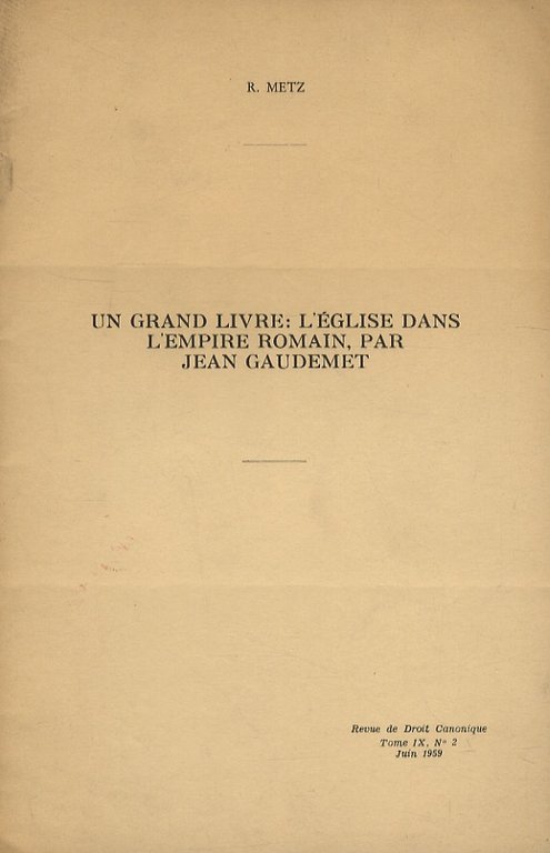 [S.l., s.n.t.], 1959, in-8, br. editoriale, pp. numerate da 123 a 145. Invio autografo dell'autore a Luigi Prosdocimi. Estratto dalla "Revue de Droit Canonique".