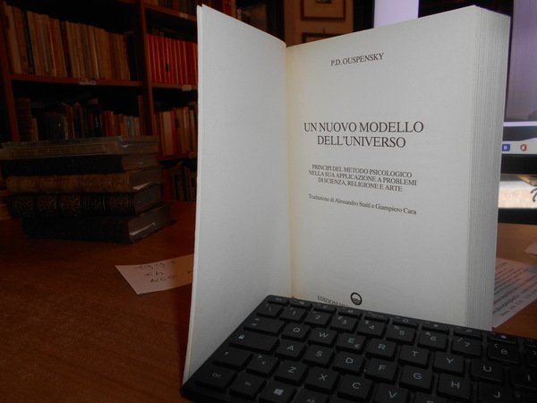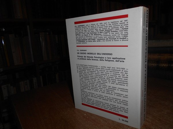 P.D. OUSPENSKY. Roma, Edizioni Mediterranee, 1991. Un nuovo modello dell' Universo. Principi del metodo psicologico nella sua applicazione a problemi di scienza, religione e arte. Traduzione di Alessandro Staiti e Giampiero Cara. In-8°, br. ill. a col. 492 pp. con alcune figure geometriche n.t. Come nuovo. Neg. mob. 7