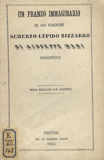 Un pranzo immaginario di 500 cognomi. Scherzo lepido bizzarro di Giuseppe Mani fiorentino. Terza edizione con aggiunte.