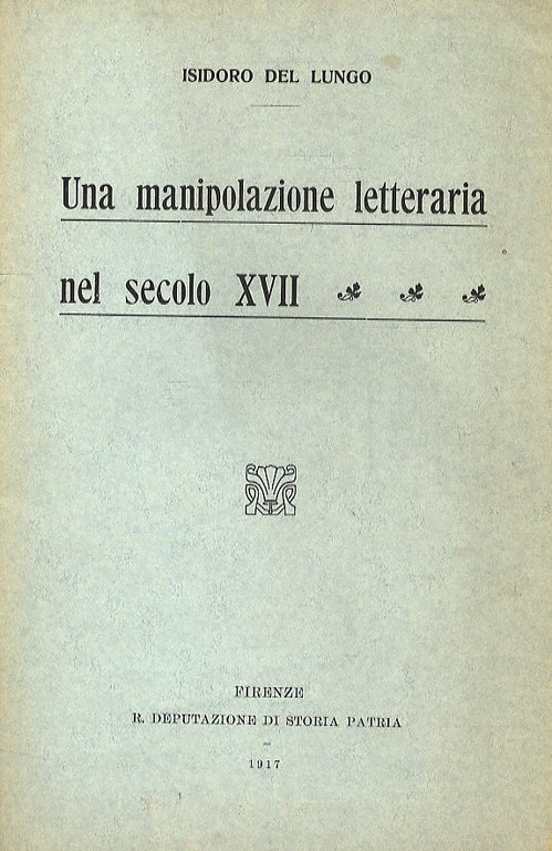 Firenze, R. Deputazione di Storia Patria, 1917, in-8, br. editoriale, pp. 78, [2]. A proposito d'una "manomissione" del testo del Poema del Verino "De Illustrazione urbis Florentiae".