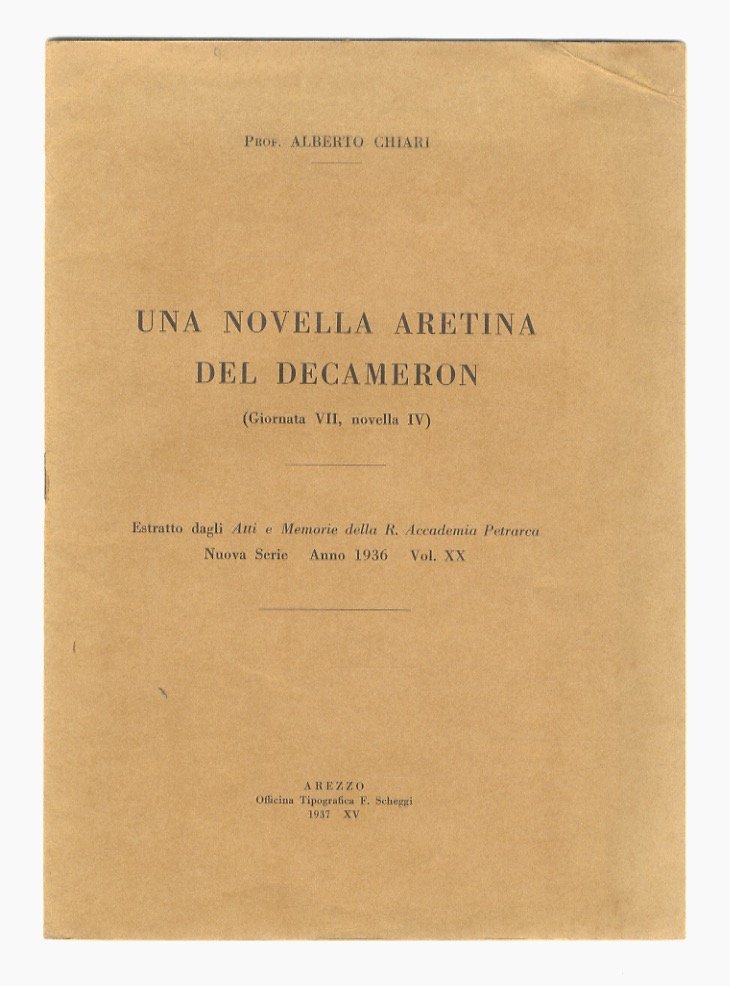 Arezzo, Off. Tipografica F. Scheggi, 1937, in-8, br., pp. 20. Estratto.
