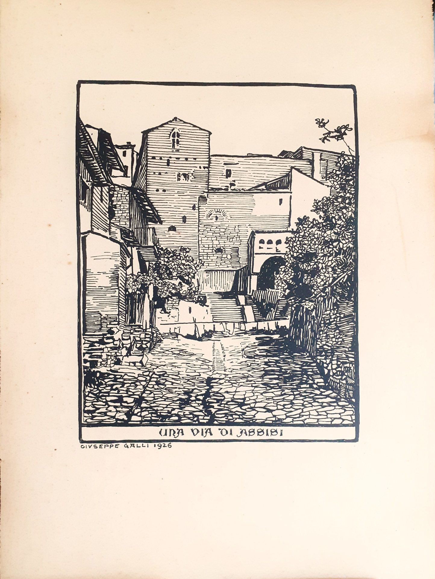 Una via di Assisi stampa estratta dalla cartella Tavole disegnate da GIUSEPPE GALLI. 1926