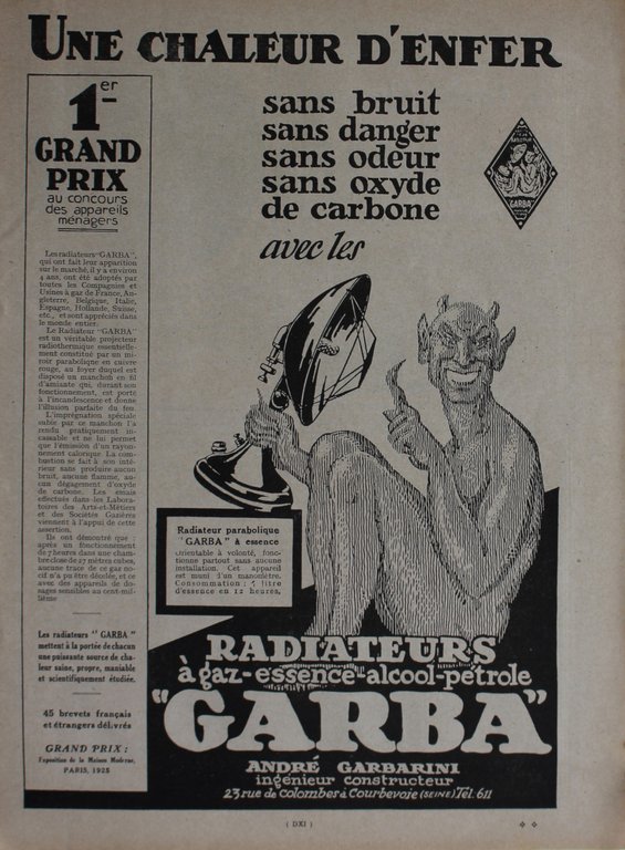 Une chaleur d'enfer avec les radiateurs Garba. Advertising 1926