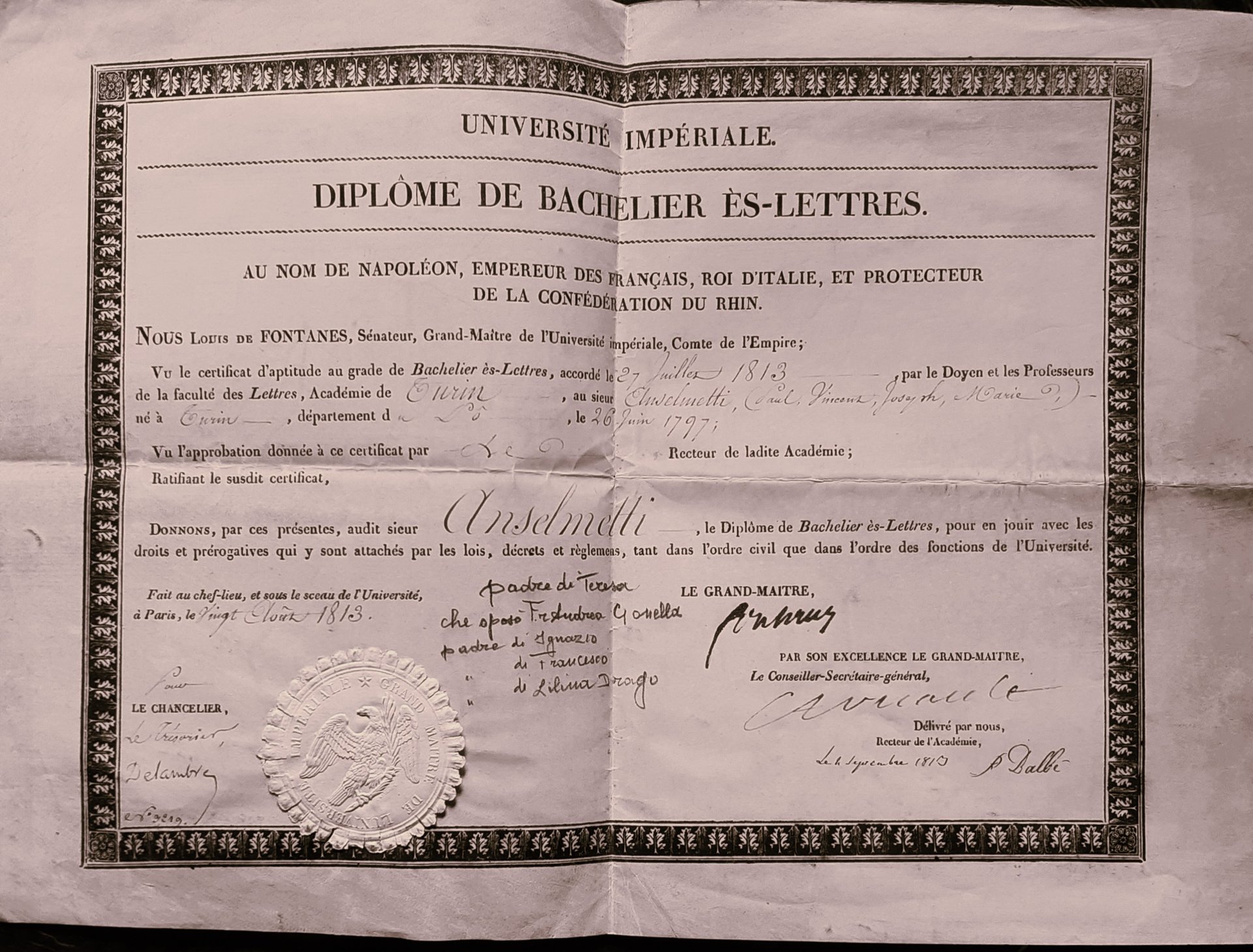Université Impériale Diplome de Bachelier ès-lettres Paris 1813