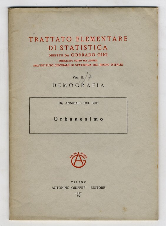 Milano, Antonino Giuffrè, 1937, in-8, br. editoriale, pp. VIII, 46. Estratto dal volume intitolato "Demografia" del "Trattato elementare di statistica diretto da Corrado Gini".