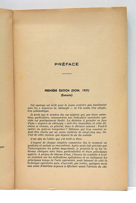 Urgences de Chirurgie. Tableaux cliniques et conduite à tenir. Deuxième édition, revue et corrigée avec 56 figures dans le texte.