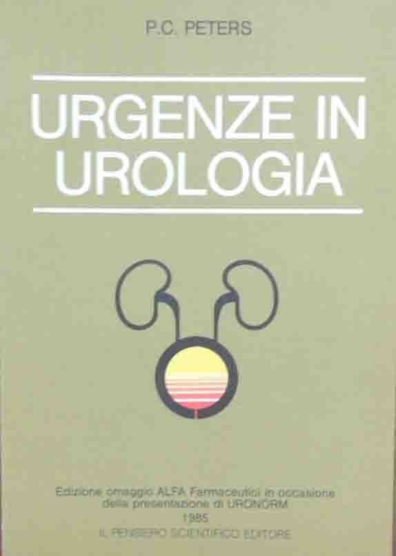 Urgenze in urologia, a cura di Paul C. Peters, edizione italiana a cura di Marcello Marchi, Il Pensiero Scientifico Editore, Roma 1984 (stampa), pp. 177, ill. b.n., cm 21, br. ed. Collana Clinica moderna. Serie Urologia clinica. Titolo originale: The urologic clinics of North America. Symposium on urologic emergencies. In calce al frontespizio: Edizione omaggio Alfa Farmaceutici in occasione della presentazione di Uronorm 1985. Alcune carte con leggere sottolineature a biro, per il resto ben conservato.