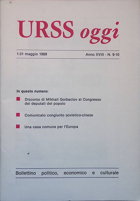 URSS oggi. Anno XVIII n. 9-10 maggio 1989