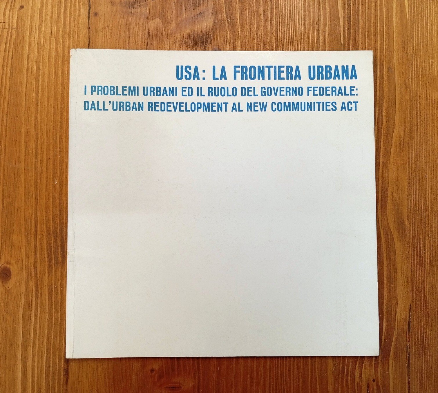 Brossura editoriale di 55 pagine con numerose illustrazioni in bianco e nero a corredo del testo. Indice consultabile nelle nostre immagini. Il volume prende spunto dalla mostra "USA: la frontiera urbana. Città per l'uomo", organizzata dall'USIS in collaborazione con IN/ARCH. Esemplare in ottime condizioni.