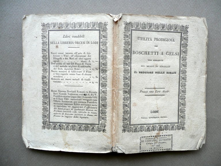 Utilit‡ Prodigiosa dei Boschetti a Gelsi Paolo Beltrami Rivolta Orcesi Lodi 1835