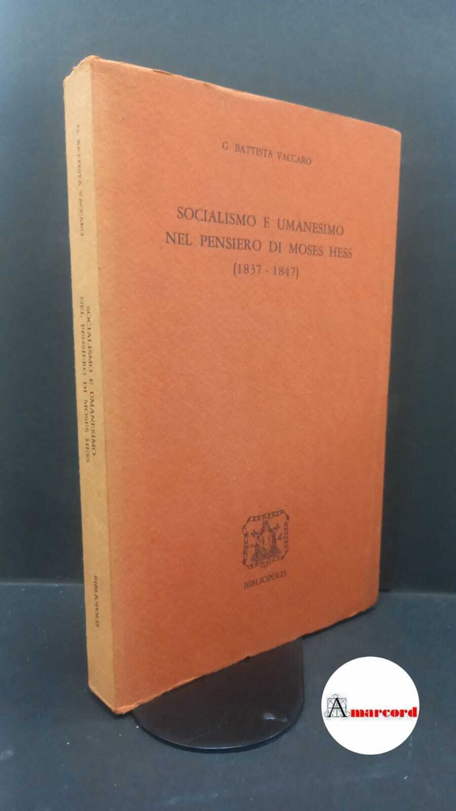 1075 Vaccaro, G. Battista Vaccaro, G. Battista. Socialismo e umanesimo nel pensiero di Moses Hess, 1837-1847 Napoli Bibliopolis, 1981. , Bibliopolis 1981 italiano, in ottavo 314 41414