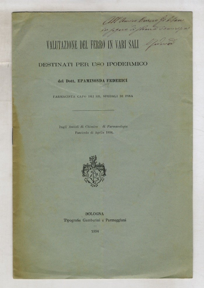 - Federici Epaminonda. (Farmacista Capo Dei Rr. Spedali Di Pisa).