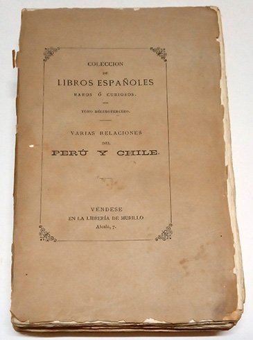 Varias Relaciones del Perú y Chile, y Conquista de la Isla de Santa Catalina. 1535 a 1658. (Relación del sitio de Cuzco y principio de las guerras civiles del Perú hasta la muerte de Diego de Almagro, 1535 a 1539 (Biblioteca Nacional, sala de Ms., J. 130) ; Rebelión de Francisco Hernández Girón en el Perú en 1553 ; Relación de las paces que capituló con el araucano rebelado el marqués de Baides, 1641 ; Felices progresos de las armas de S.M. en el reino de Chile, 1657-1658 ; Relación del suceso que tuvo Francisco Díaz Pimienta en la isla de Santa Catalina). | Libri antichi e moderni |