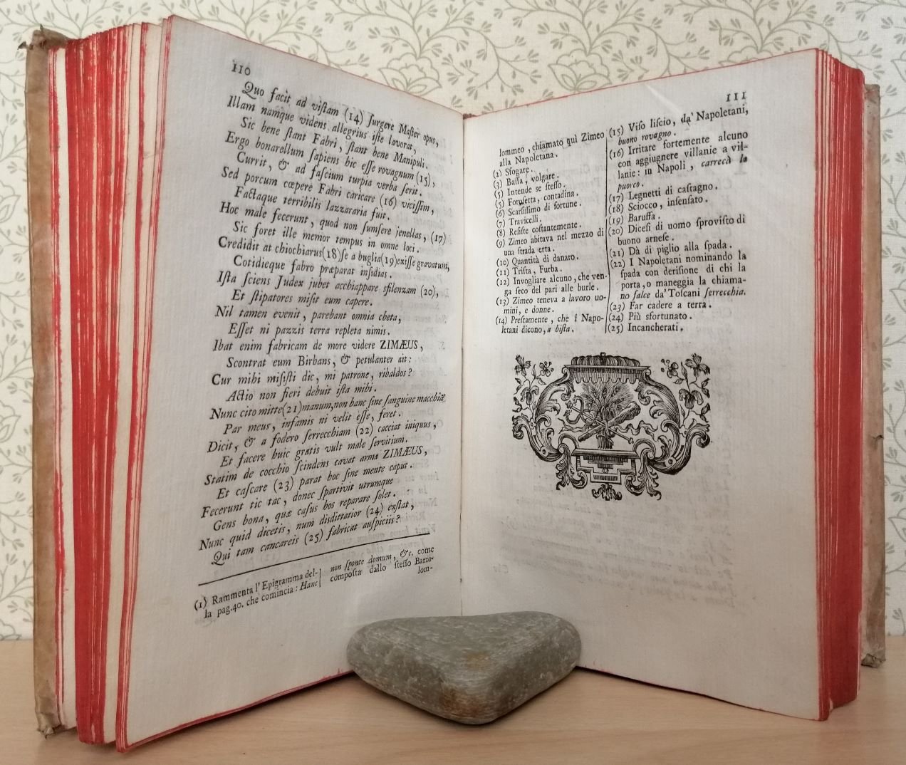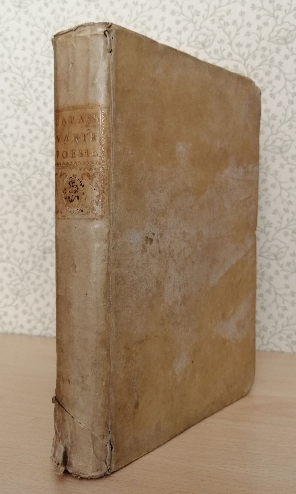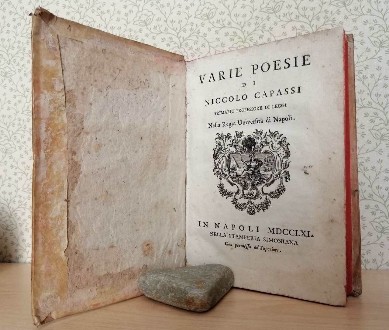 Volume in 4 piccolo legato in pergamena coeva, titolo al tassello al dorso, frontespizio con bella marca tipografica, 9 carte, 358 pp., una carta d'errata. noto letterato e giurista napoletano, ricordato dal Croce come spirito arguto, inventivo macchinatore di beffe e buffonate e perenne canzonatore e tormentatore di amici e colleghi. La prima parte contiene le poesie italiane, latine, napoletane e maccheroniche; la seconda l'Iliade di Omero in dialetto napoletano. Da notare a pag. 29 un sonetto inedito di Giambattista Vico in risposta ad una poesia del Capasso per le nozze di Adriano Carafa dedicato al Vico. C' da perdersi nella vasta scelta di soggetti e situazioni, la stupefacente vena del Poeta irresistibile. In pi che bello stato, assai poco comune. Notando.