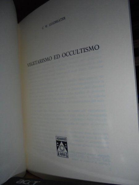 Leadbeater C.W. Palermo, Antonio Giannone, 1982. Vegetarismo ed Occultismo. In-8°, cartoncino edit. 58, (1) pp. Come nuovo. Uff. stanz. TV. esot.