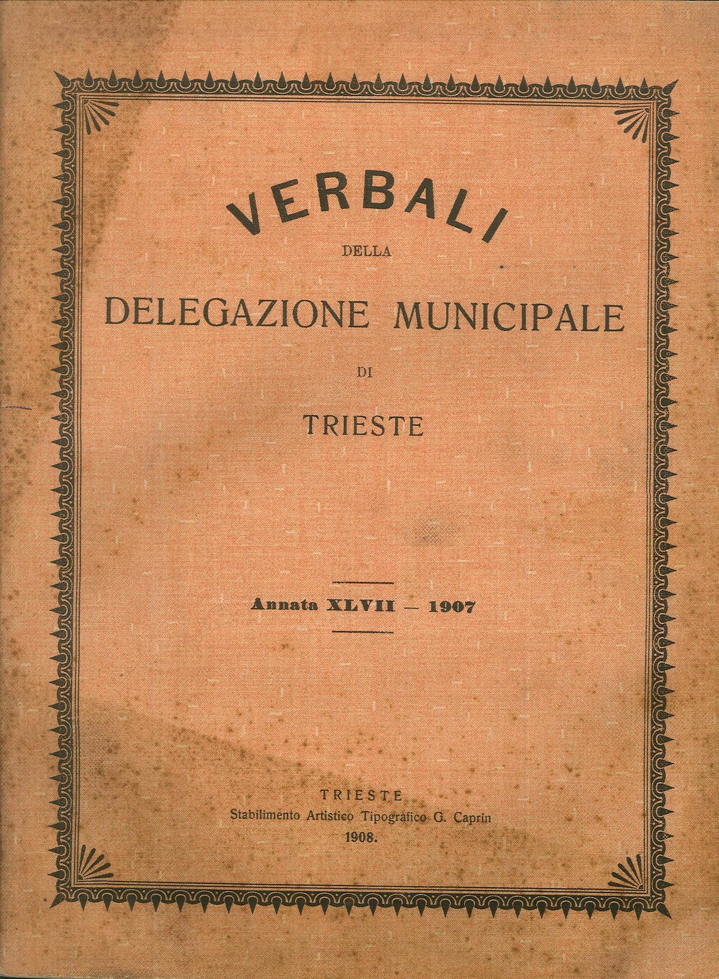 Verbali della Delegazione Municipale di Trieste. Annata XLVII. 1907.
