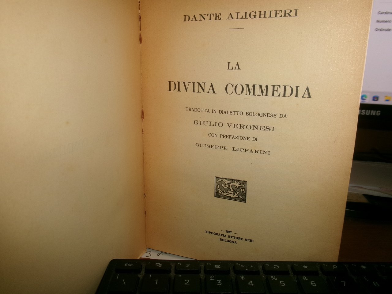 VERONESI DANTE ALIGHIERI. LA DIVINA COMMEDIA tradotta in dialetto bolognese 1937