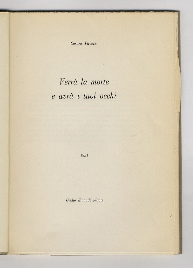 Verrà la morte e avrà i tuoi occhi. | Libri antichi e moderni | Pavese Cesare.