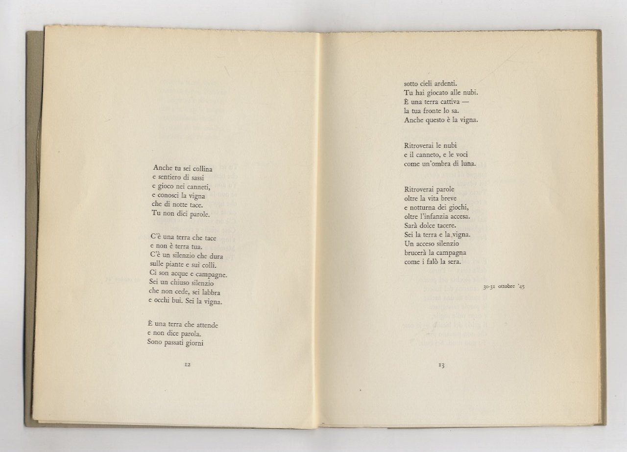 Torino, Giulio Einaudi, 1951 (stampa: Francesco Toso febbraio 1951), in-8, brossura editoriale, pp. 46, [2]. Prima edizione, postuma. Ex-libris. Ottimo esemplare.
